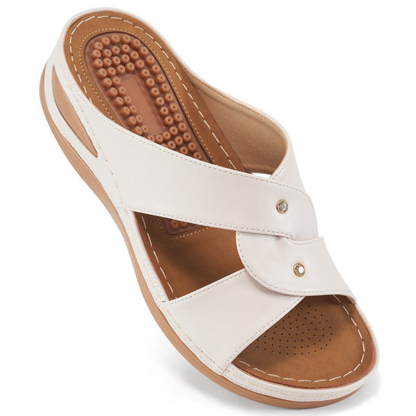 HARENC™Clogs for Women Shoes Slip on Leather Mules Sneakers Casual Summer Wedge Sandals Comfortable Travel Clogs Indoor Outdoor Mules
