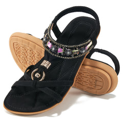 Ablanczoom Womens Summer Flat Sandals Beaded Comfortable Elastic Beach Shoes