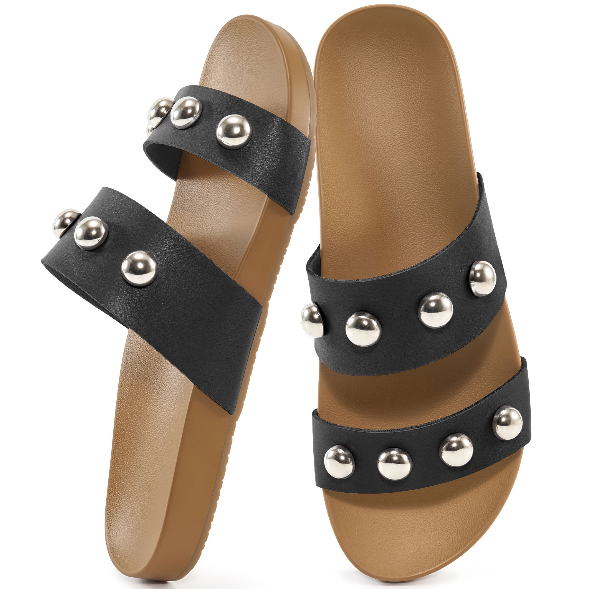 Ecetana Flat Sandals for Women Open Toe Summer Slide Sandals Double Strap Slip On Women's Sandals
