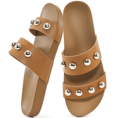 Ecetana Flat Sandals for Women Summer Dressy Slide Sandals Fashion Willow Nail Open Toe Slip On Beach Party Sandals Walking Outdoor Slippers