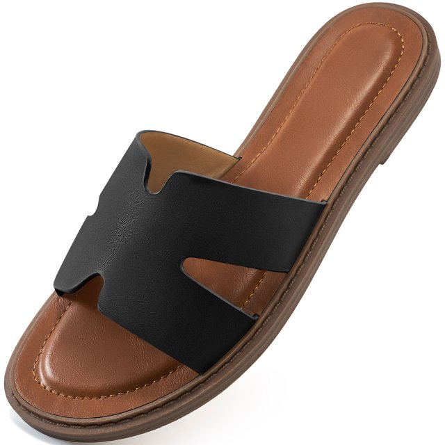 Ecetana Flat Sandals for Women Dressy Slide Sandals Fashion Open Toe Slip On Beach Sandals for Summer Non-slip
