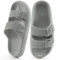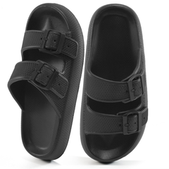 Ecetana Slides Sandals for Women Double Buckle Adjustable Thick Sole Pillow Slippers Non-slip Flat Sandals