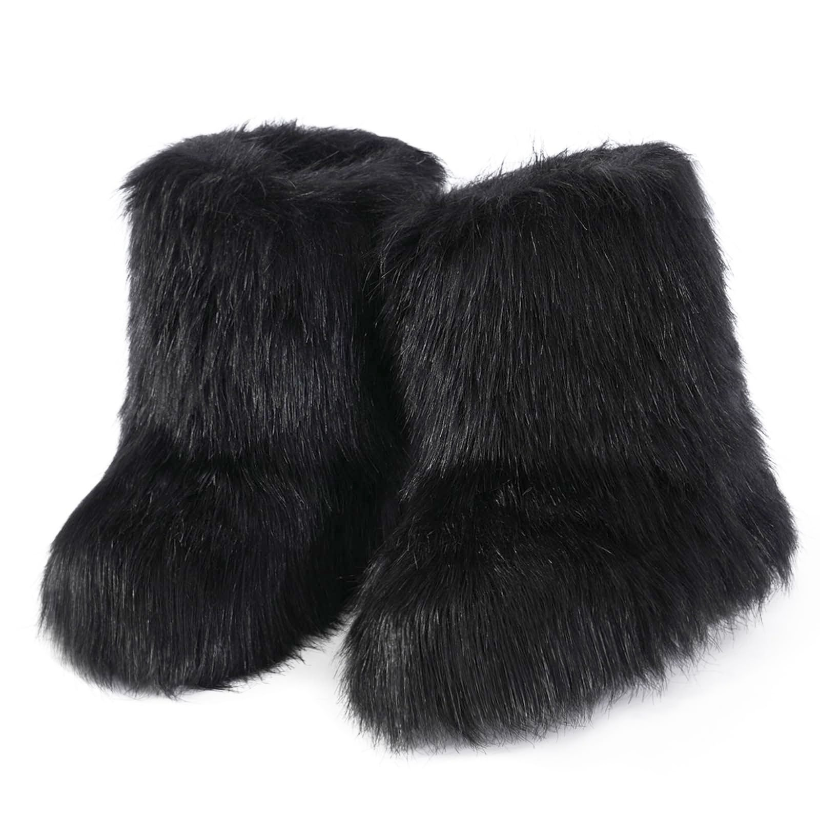 Ecetana Womens Faux Fur Boot Winter Warm Fluffy Long Furry Boots Mid-Calf Snow Boots