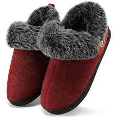 Women's Closed Back Slippers, the perfect companion for your cozy winter evenings at home. Crafted with a closed back design, these slippers offer a secure fit and prevent them from slipping off while you walk. Made with fuzzy memory foam, these slippers provide ultimate comfort and support for your tired feet. The faux fur lining adds an extra touch of warmth, keeping your feet snug and toasty. Whether you're lounging indoors or stepping outside for a quick errand, these slippers are versatile for both indoor and outdoor occasions.